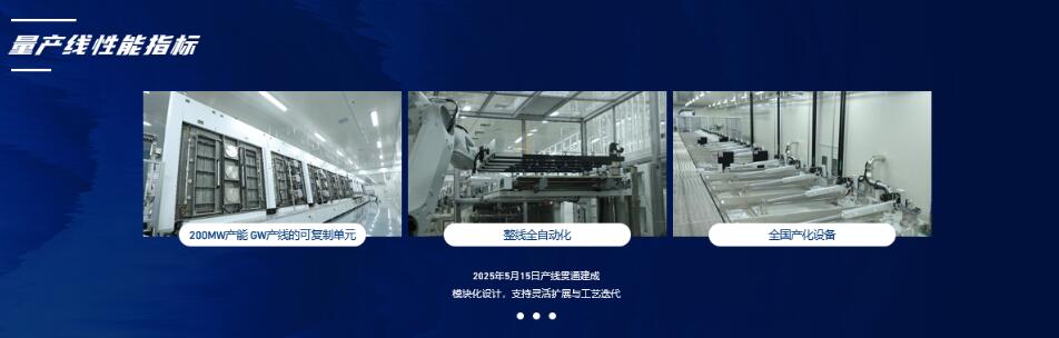 中核光电5月15日建成200MW刚性钙钛矿全自动量产线,首批1200×1600mm²组件下线效率16.5%,预计2025年内效率达20%,该量产线在行业内率先全面采用国产设备,以智能制造为核心理念,融合了高精度设备、高效工艺流程与全流程自动化控制,自动化水平、国产化率和成本控制能力均居行业领先水平。