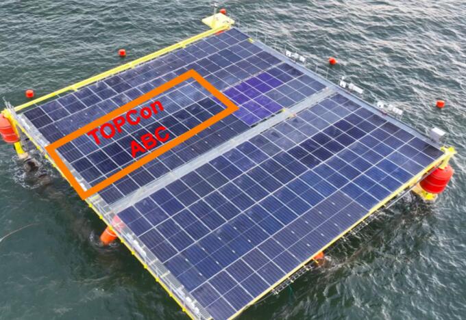 作为集中式光伏电站的重要应用领域,海上光伏近年呈现规模化发展态势,然而高温、高湿、高盐雾,强风、强降雨、强雷暴等极端天气对光伏组件的品质提出了极大挑战。针对验证海上场景光伏组件的发电能力,试验人员在山东烟台的CPVT(中国国家质检中心)海上漂浮电站中分别安装了各10块的ABC及TOPCon组件进行实证,从2024年10月1号开始采集发电数据并同步实时记录基地的各项环境条件。ABC组件在持续发挥功率领先优势的同时,其独有的抗隐裂性能更是在海面场景下为抗击浪涛冲击提供了强大保障,更优温度系数也使得ABC组件在高温环境下的发电表现优异。结果显示在210天的测试周期内,爱旭ABC组件的累计单千瓦发电量为438.23kWh,TOPCon组件为418.68kWh,单千瓦发电增益达4.67%,ABC组件在水面场景具备更高的发电优势和场景适配性。