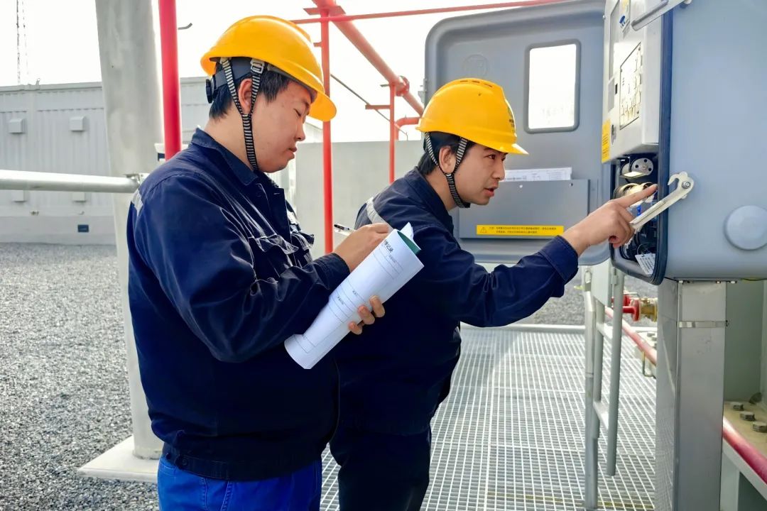 运维人员正在对220千伏升压汇集站主变压器进行巡检(苏波 摄)