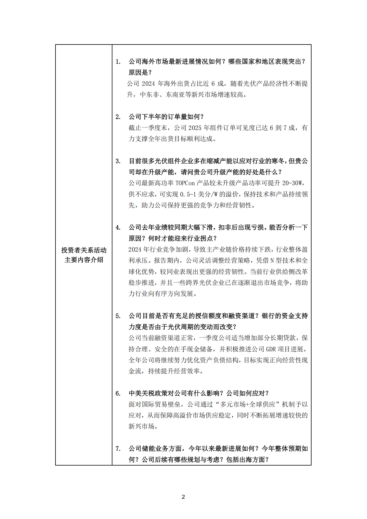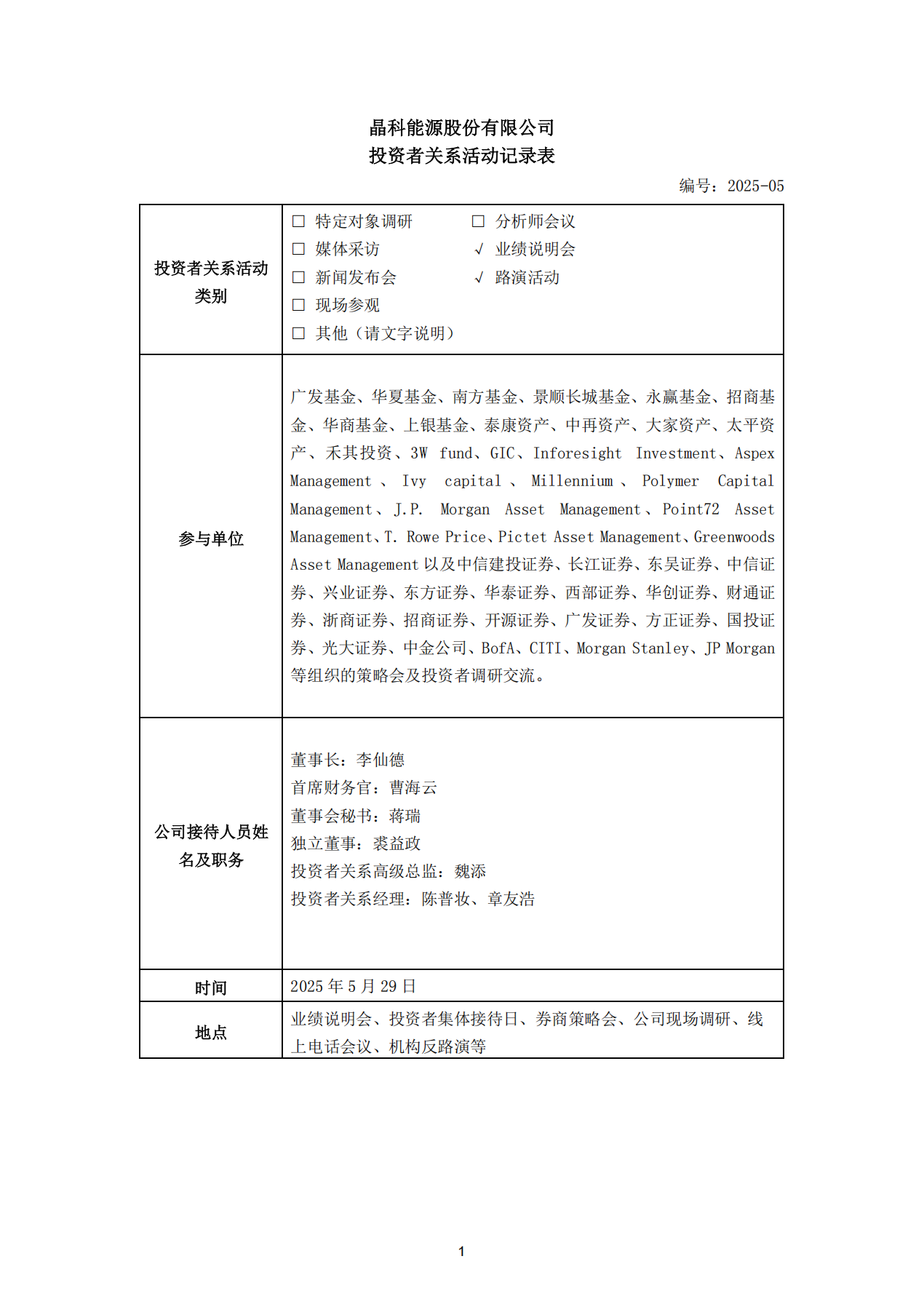在出货量方面,2025年第一季度,晶科能源实现总出货量19.1GW,较去年同期减少12.68%。其中,组件出货量为17.5GW,硅片和电池片出货量为1.63GW。不过,公司对第二季度及全年出货情况持有较为乐观的态度,预计二季度组件出货量将达到20GW至25GW。