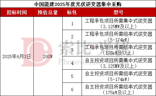 6月3日,中国能建发布2025年度光伏逆变器、光伏支架集中采购项目招标公告。
