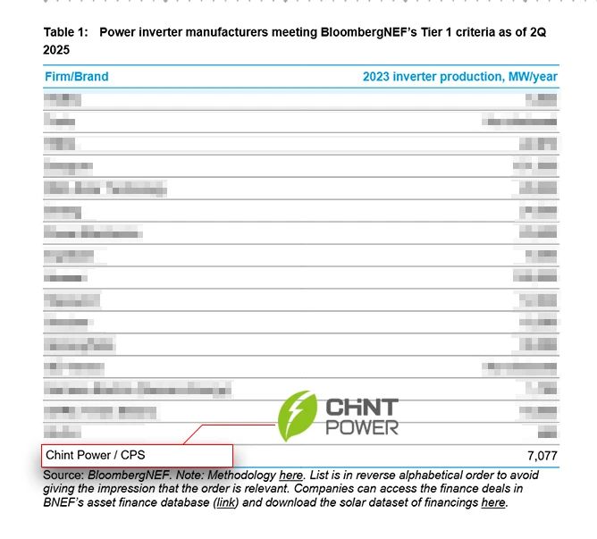 近日,彭博新能源财经(BloombergNEF,以下简称“BNEF”)正式发布了2025年第二季度全球光伏逆变器制造商Tier 1榜单(BNEF Tier 1 Power Inverter 2Q 2025)。