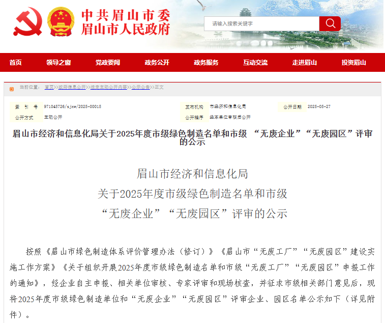 此次评选严格按照《眉山市绿色制造体系评价管理办法(修订)》进行,经过企业自主申报、相关单位审核、专家评审和现场核查,并征求了市级相关部门的意见,最终确定了获奖名单。