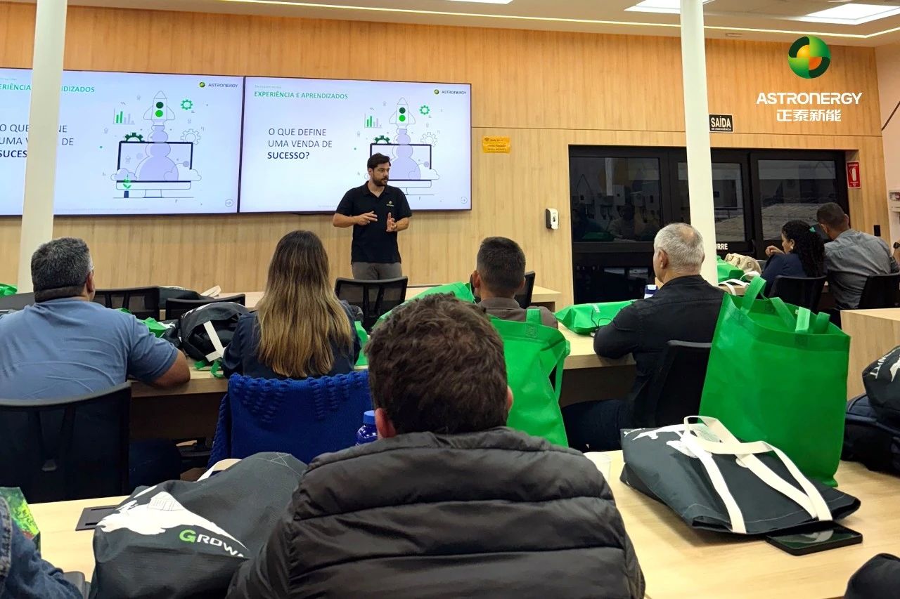 正泰新能整合近20年行业经验,为巴西安装商、工程师及运维人员带来光伏组件知识一站式培训。正泰新能巴西国家经理Eduardo Gama Tamburus带来了题为《正泰新能的差异化优势——通过战略、可靠性和质量认证提高销量》的演讲,深度解析正泰新能ASTRO N系列组件在发电效率与可靠性方面的独特优势。