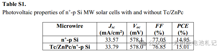 可扩展的技术路径: 所采用的有机层热蒸发、原子层沉积(AlOₓ)、微线硅电池工艺均与现有光伏技术兼容,具有规模化应用的潜力。