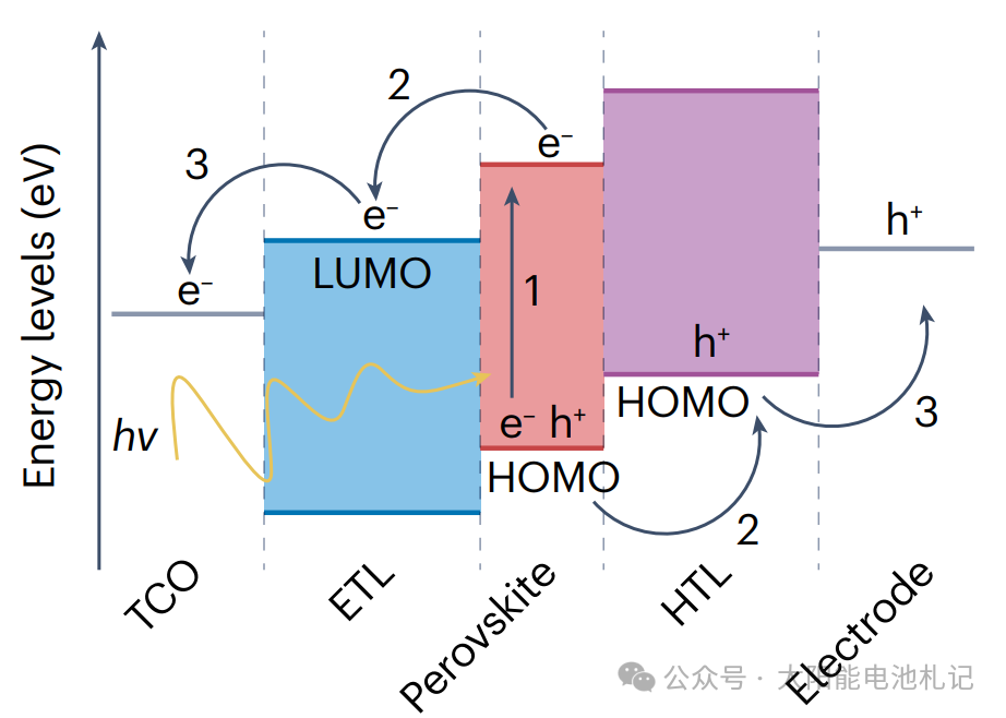 作者心得:通过这篇文章中描述的能级匹配的差异,导致EQE(IPCE)在短波段的图像出现凹陷和凸增的情况,作者想到硕士期间在验证不同组成(不同带隙)的钙钛矿配方时----即吸光主体的带隙发生变化,其余层的组成材料不变(能带结构不变)----不同钙钛矿配方的EQE曲线在短波段(430 nm左右)出现的凹陷情况,究其本质原来是钙钛矿配方组成改变后引起带隙发生变化,而其余层的能带结构不变,导致各层之间的能带结构出现不匹配进而影响量子产率。