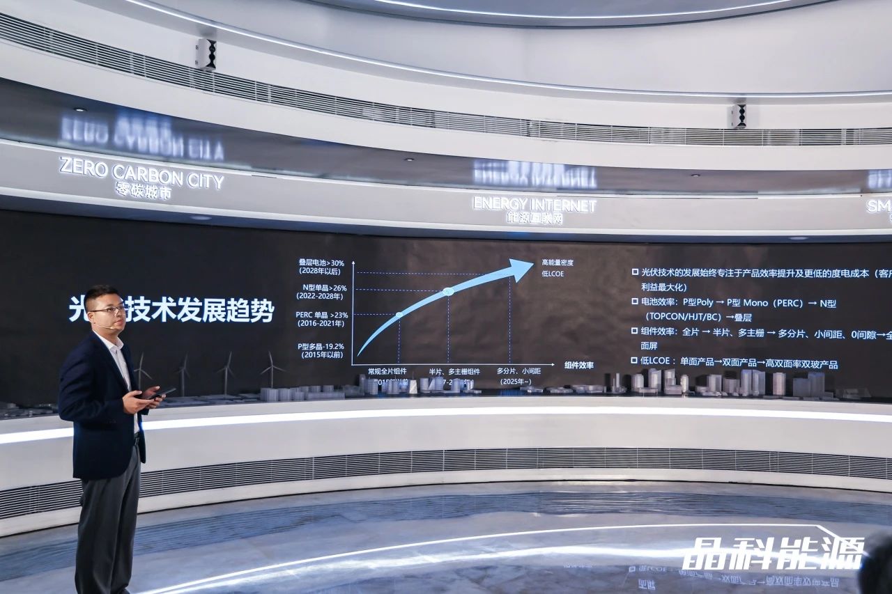 在发布会上,晶科能源研发副总经理戴健阐述了TOPCon技术的前瞻性。他指出,TOPCon电池及其升级技术仍具有广阔的提效空间,未来3年效率有望达到28%以上,逼近单结晶硅电池效率极限。随着工艺的持续优化和规模效应的逐步释放,TOPCon技术的经济性将日益显著。预计在未来将主导光伏技术演进,并为钙钛矿叠层等下一代技术奠定基础。