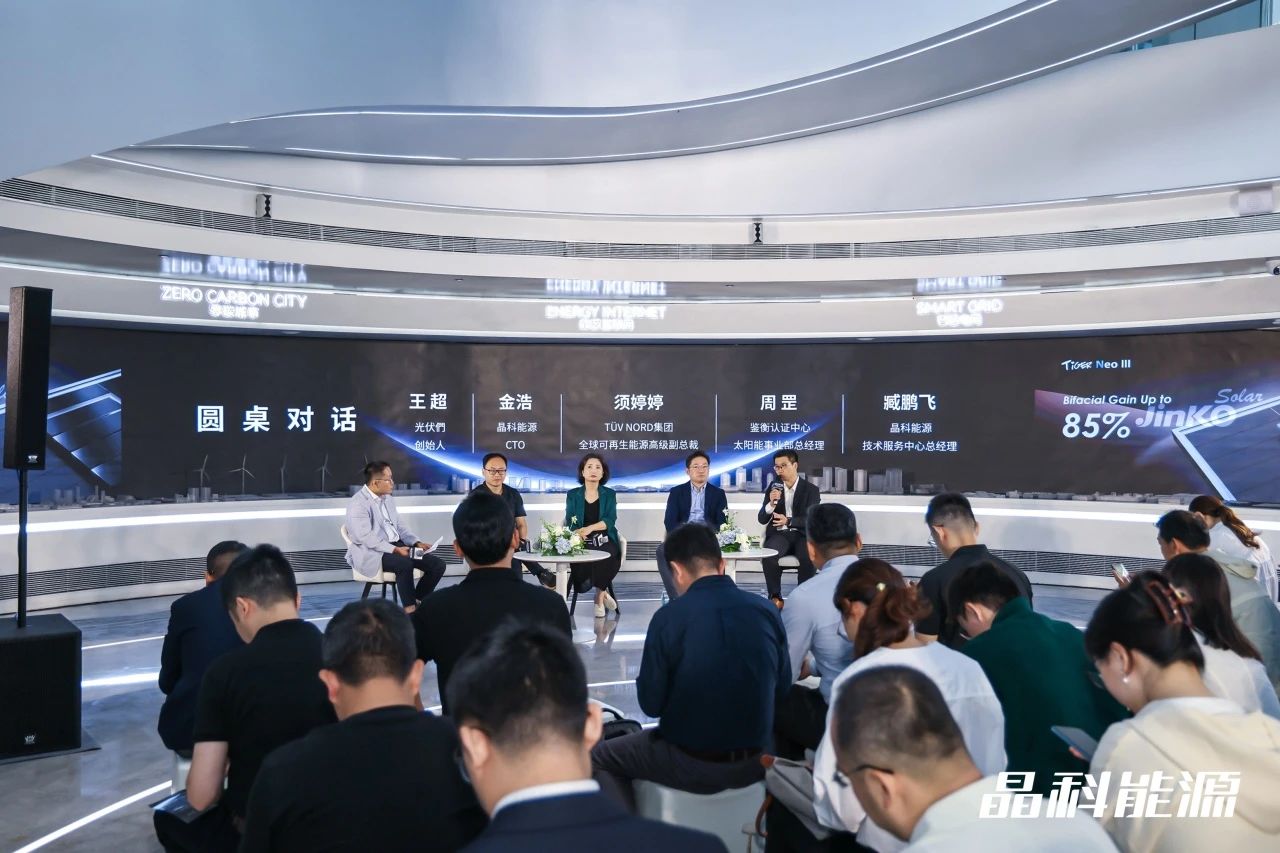 在圆桌论坛环节,晶科能源CTO金浩、晶科能源技术服务中心总经理臧鹏飞、TÜV NORD集团全球可再生能源高级副总裁须婷婷以及鉴衡认证中心太阳能事业部总经理周罡,围绕TOPCon技术白皮书,进一步阐述TOPCon技术行业价值、未来发展潜力及产业发展格局等。经过深入探讨,他们认为,TOPCon电池当前仍有巨大的发展潜力,通过不断的研发投入和技术创新,TOPCon技术有望在效率提升、成本降低以及应用拓展等方面取得更大突破,进一步巩固其在光伏产业中的核心地位。