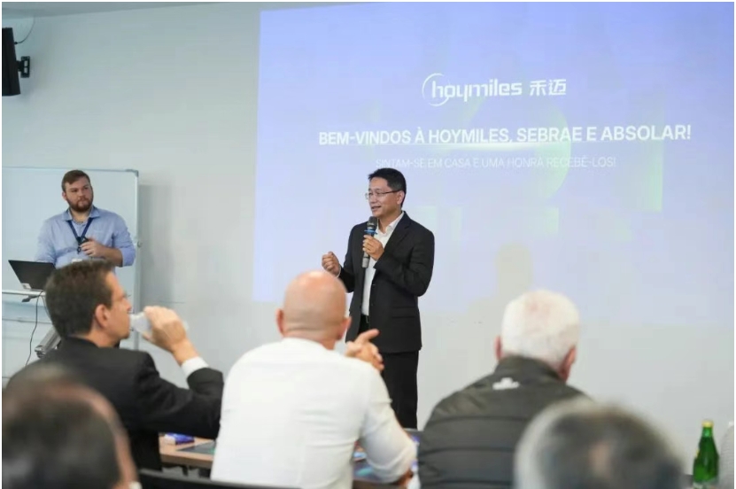 6月10日,禾迈在杭州总部盛情接待巴西代表团一行。该代表团由巴西光伏太阳能协会ABSOLAR和巴西中小企业支持服务机构SEBRAE组织的30家当地新能源企业组成,成员包括ABSOLAR代表Camila de Paula Ramos、Ronaldo,SEBRAE 总经理José Ferreira、可再生能源部门经理Lorena Alves等。禾迈副总裁容岗、拉美大区总监朱佳康等高管出席接待活动。此次巴西代表团的到访,是禾迈与巴西及拉美市场深化合作历程中的又一重要里程碑,也为未来在巴西光储领域携手共进、开拓更广阔市场奠定了坚实基础。