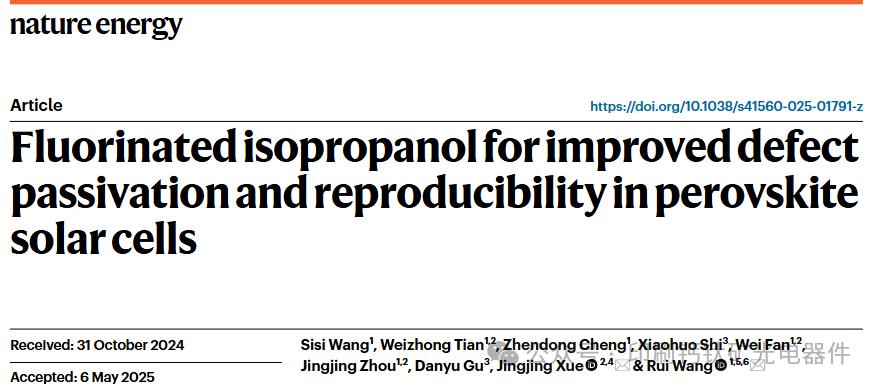 2. 高效能:使用氟化异丙醇(FIPA)作为溶剂显著提高了钝化效果,实现了高达25.6%的功率转换效率。