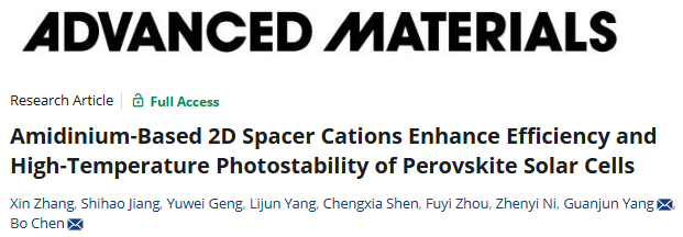 最近研究证实脒基阳离子因其固有pKa值高于铵类,作为化学钝化剂和场效应钝化剂时可抑制去质子化导致的不稳定性。尽管取得这些进展,脒基间隔阳离子在二维/三维异质结中同时提升钝化效果与高温光稳定性的潜力尚未被探索。