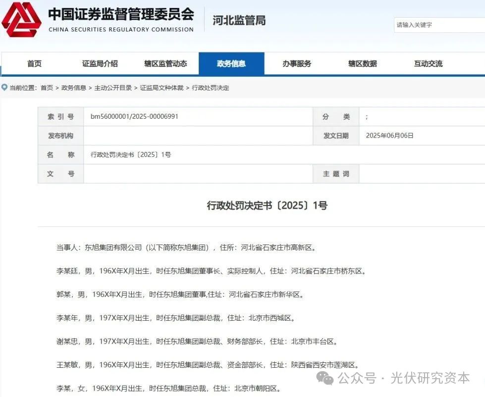河北证监局行政处罚决定书〔2025〕1号显示,经河北证监局查明,东旭集团在债券市场披露的信息存在虚假记载、发行公司债券存在欺诈发行;李兆廷及东旭集团组织、指使东旭光电从事信息披露违法、欺诈发行股票行为;李兆廷及东旭集团组织、指使东旭蓝天从事信息披露违法行为。
