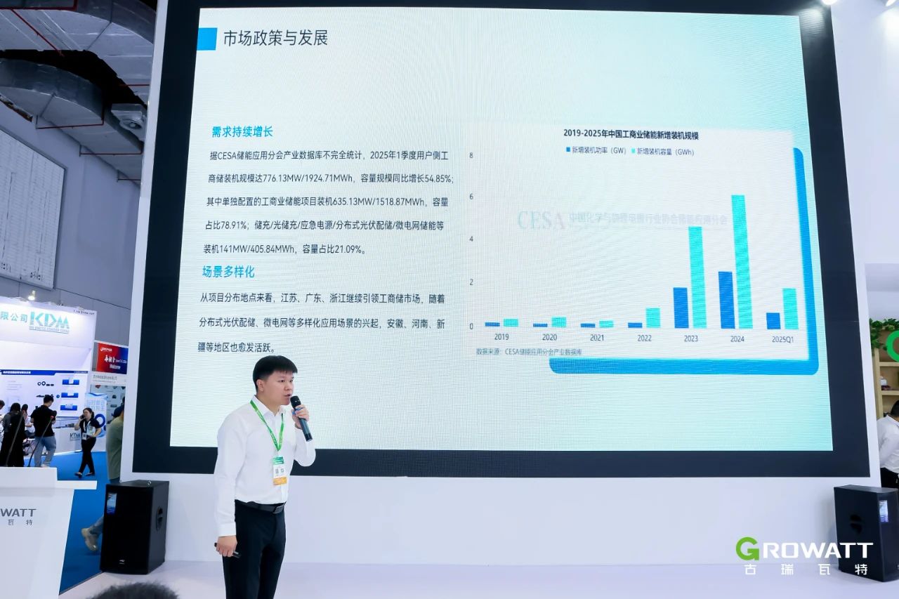 浙江省太阳能光伏行业协会秘书长沈福鑫指出,工商业储能市场前景广阔,古瑞瓦特凭借对机遇的敏锐洞察、持续的技术创新及在储能产品领域的全场景布局,已在该领域取得领先优势。