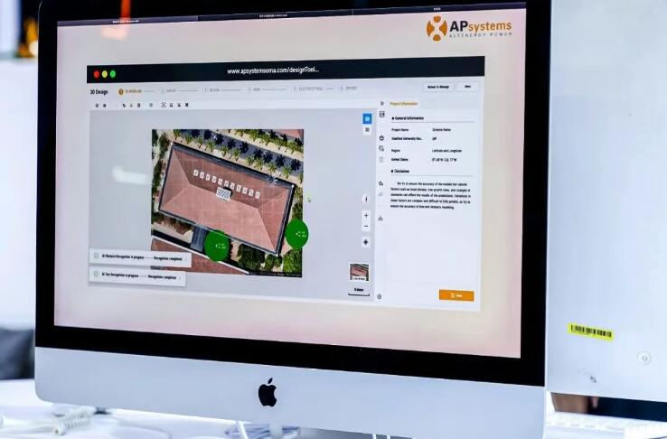 此外,重点展示的还有AI赋能升级的“AP Designer”电站设计工具。它深度融合AI图像识别与处理、数字虚拟化等技术,通过采集丰富的训练样本以及多轮学习迭代,实现了精准的识别效果,能迅速且精准地对光伏电站设计所涉及的屋面状况、树木分布及障碍物位置等信息进行全面剖析,具备卫星定位、在线设计、手动与AI自动3D建模、评估报告生成等功能,为用户带来从设计规划到成本评估的一站式优质、便捷服务体验。