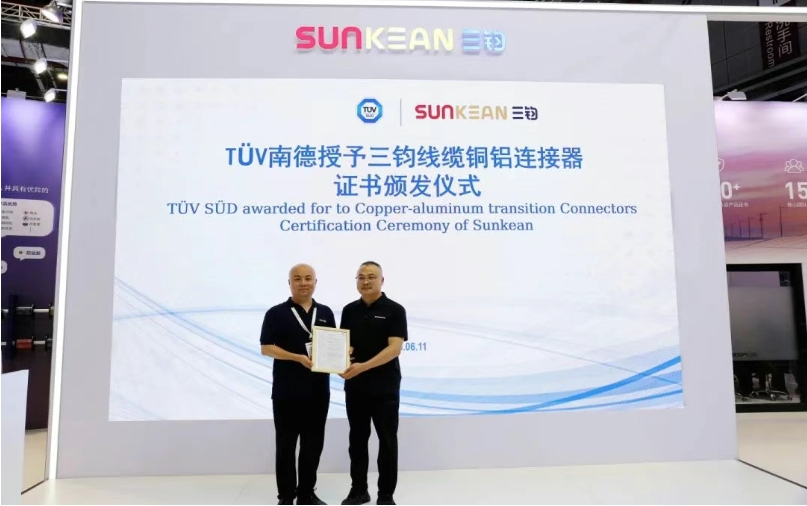 活动现场,莱茵TÜV、南德TÜV同期举行了三钧新品颁证仪式,以行业龙头测试机构的权威性充分验证三钧铜转铝连接解决方案的可靠性。与此同时,三钧还在主场从SNEC官方组织的两大评选中脱颖而出,荣获APVIA亚洲光伏奖、SNEC十大亮点产品与技术“兆瓦级翡翠奖”。跟随本文,从内部工艺到外部设计,详细了解三钧铜转铝连接解决方案能够为光伏电站带来哪些切实改变?