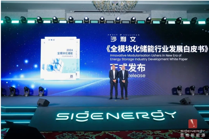 值得一提的是,发布会现场,思格还联合全球权威咨询机构弗若斯特沙利文(Frost & Sullivan)发布《2024全模块化储能行业发展白皮书》,指出模块化储能系统正凭借灵活配置、便捷扩容与更高的安全性,逐步成为市场主流方向。思格新能源凭借其在产品架构设计与多场景落地方面的优势,作为模块化储能最佳实践案例成功入选报告。