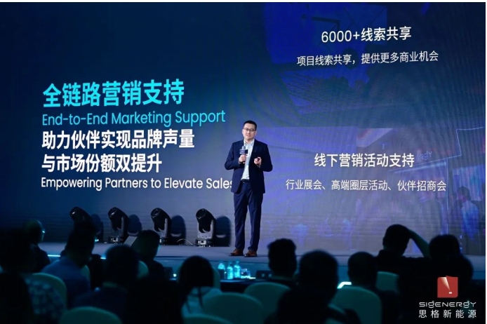 思格新能源全球销售与解决方案总经理张嘉伟在会上介绍了面向中国区的渠道生态建设与合作计划:“我们始终以保护伙伴利益为圆心,以共建、共享、共赢为半径,绘制可持续发展的价值蓝图。”