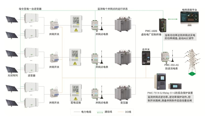CET中电技术结合光伏电站的特点、全面考虑电网及发电企业的需求,推出“刚柔并济”的分布式光伏防逆流解决方案。“如 “柔性”防逆流产品-CET-7320-B控制终端;“刚性”防逆流产品-PMC-751X-G/iRelay51-G防孤岛保护装置;数据采集产品-PMC-350-A5防逆流电表。