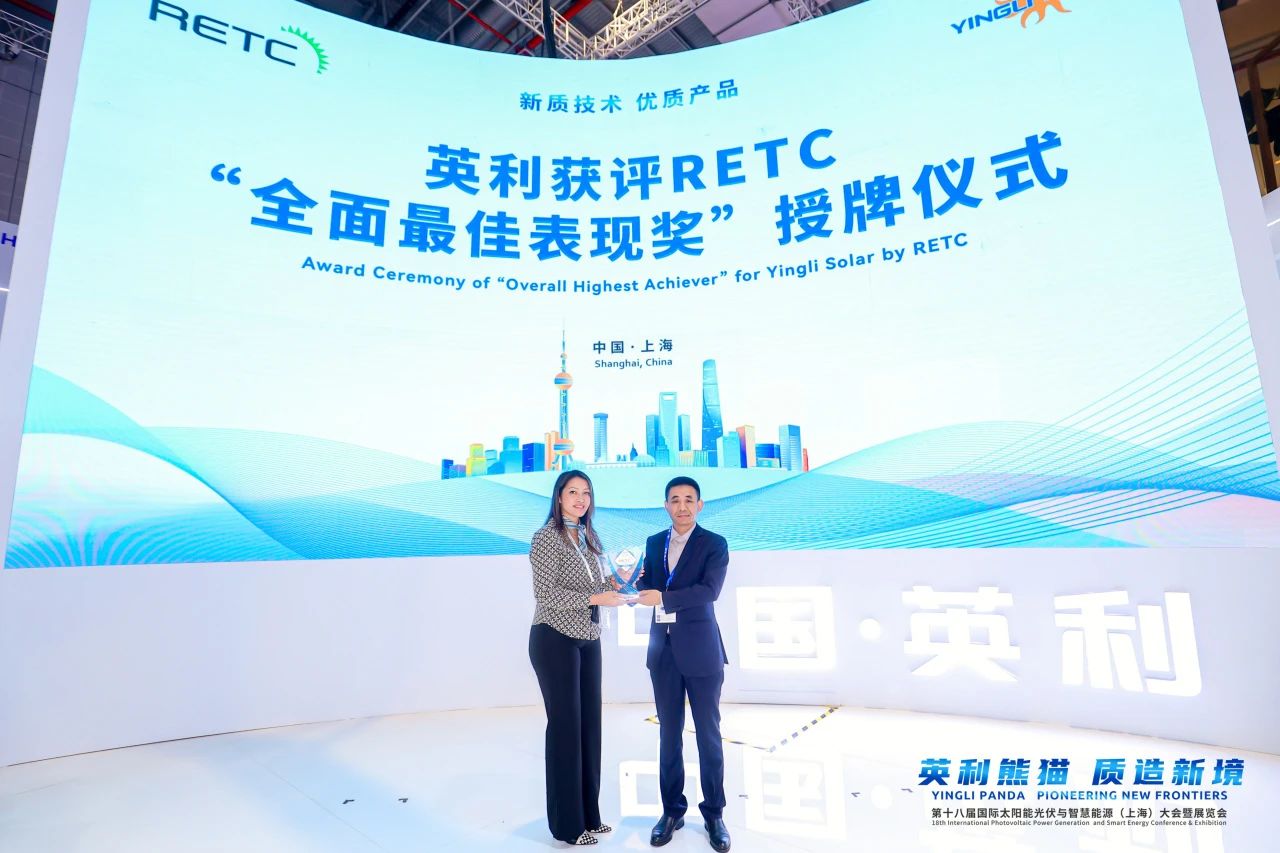 由于此次展示的熊猫系列新品技术领先,质量可靠,通过第三方检测机构RETC的严苛测试,因此,11日上午,RETC还在SNEC现场授予英利“全面最佳表现奖”,这也是英利连续第5年获此殊荣。