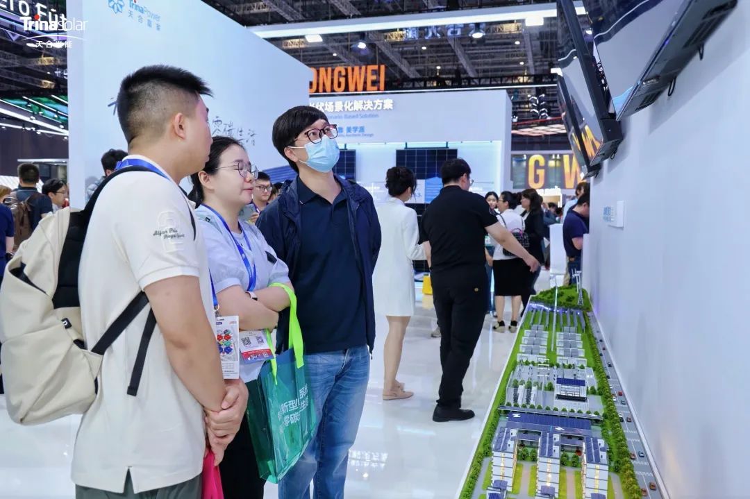 与此同时,基于新一代i-TOPCon Ultra技术的全新升级的全场景至尊N型中大版型组件产品亮相展会。其中,大版型组件功率高达760W,中版型功率高达670W,适用于大型地面电站、工商业及山地等复杂地形等多种场景。分布式场景化解决方案通过场景化定制满足工商业及户用屋顶多元化需求,覆盖低载荷、机场眩光、积灰积雪、高消防安全需求等场景,在保障高可靠性的同时实现发电效率与建筑美学的完美统一,让绿色能源融入每一处生活空间。