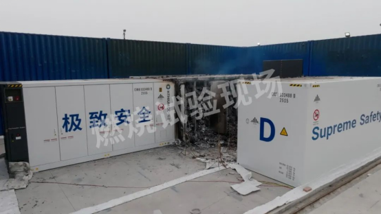 持续燃烧阶段:历经15小时充分燃烧后,明火熄灭,触发预制舱未发生结构变形或坍塌的状况,相邻三个集装箱箱体均未发生燃烧和热失控传播,B、C、D三个箱体仅表面损伤,内部模组完好无损。
