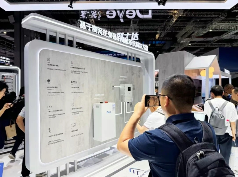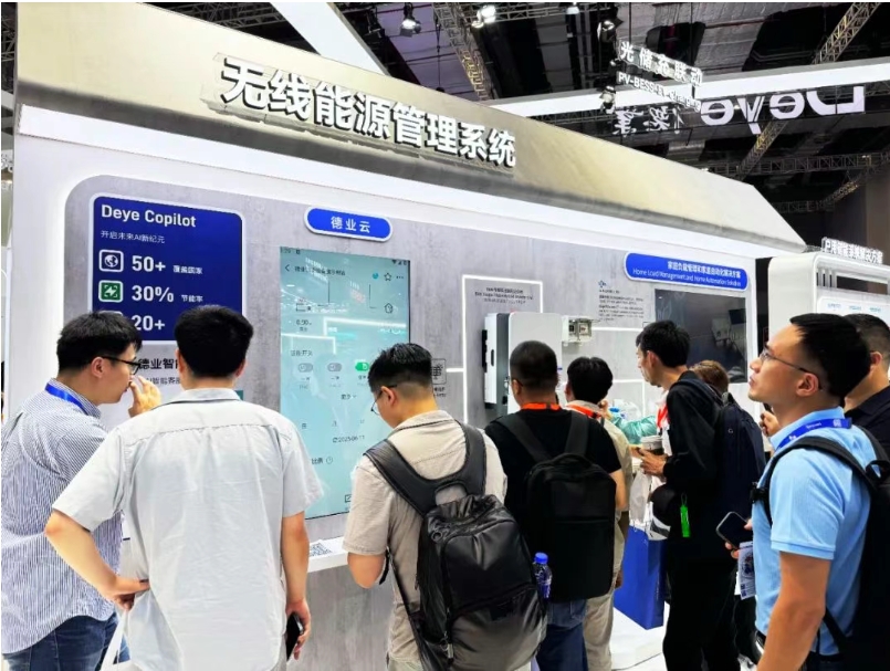 在户用光储领域,德业展示了包括20kW三相低压储能逆变器在内的多款王牌产品,还专门建立了无线能源管理系统实景体验墙,供用户亲身体验基于LoRa低延迟通讯的便捷家庭负载管理和家居自动化体验。