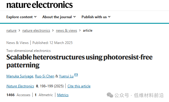 传统的图案化技术,如光刻,虽然成熟,但也存在致命问题——其使用的光刻胶和显影剂会在材料表面留下化学残留物,严重破坏层与层之间的界面质量。而高质量的二维异质结构对界面的洁净程度要求极高,任何微小的污染都会影响其电子性能。因此,如何在不损伤材料本征特性的前提下,进行高精度、大面积图案化,成为研究热点。