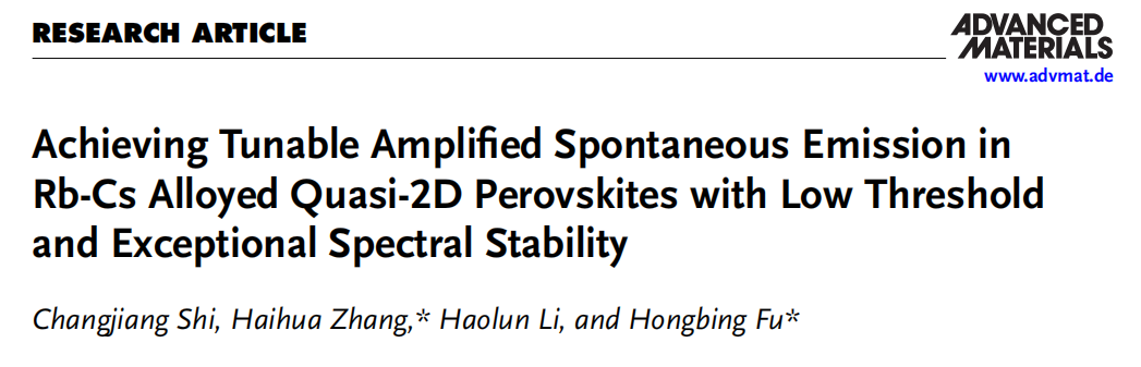 蓝绿激光器在众多领域应用广泛,但传统 III-V 半导体激光器存在制造复杂、成本高、带隙调节困难等问题。混合卤化物钙钛矿具有可调带隙和低成本溶液加工的优势,但卤素迁移导致的谱稳定性差限制了其应用。本文提出了一种新型的 Rb-Cs 合金准二维钙钛矿材料,实现了低阈值放大自发辐射 (ASE) 和优异的谱稳定性。通过精确调节 Rb-Cs 比率,实现了 ASE 波长在 481-532 nm 范围内可调,覆盖蓝绿光区域。Rb-Cs 合金化策略有效地抑制了俄歇复合,优化了量子阱分布和能量景观,从而降低了 ASE 阈值,达到 1.94 μJ·cm−2,比混合卤化物钙钛矿低 50% 以上。此外,该材料表现出优异的谱稳定性,即使在长时间热退火后,ASE 谱依然稳定,克服了卤素迁移引起的降解问题。