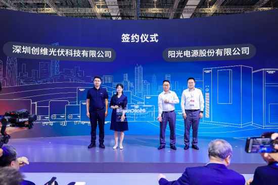 记者在 SNEC PV+第十八届(2025)国际太阳能光伏和智慧能源&储能及电池技术与装备(上海)大会暨展览会上了解到,创维光伏与阳光电源签署了双方合作协议,2025年计划在分布式户用、工商业市场完成光伏逆变器采购合作,通过优势互补形成完整的光伏系统解决方案,共同推动光伏产业向更高效、更普惠方向发展。