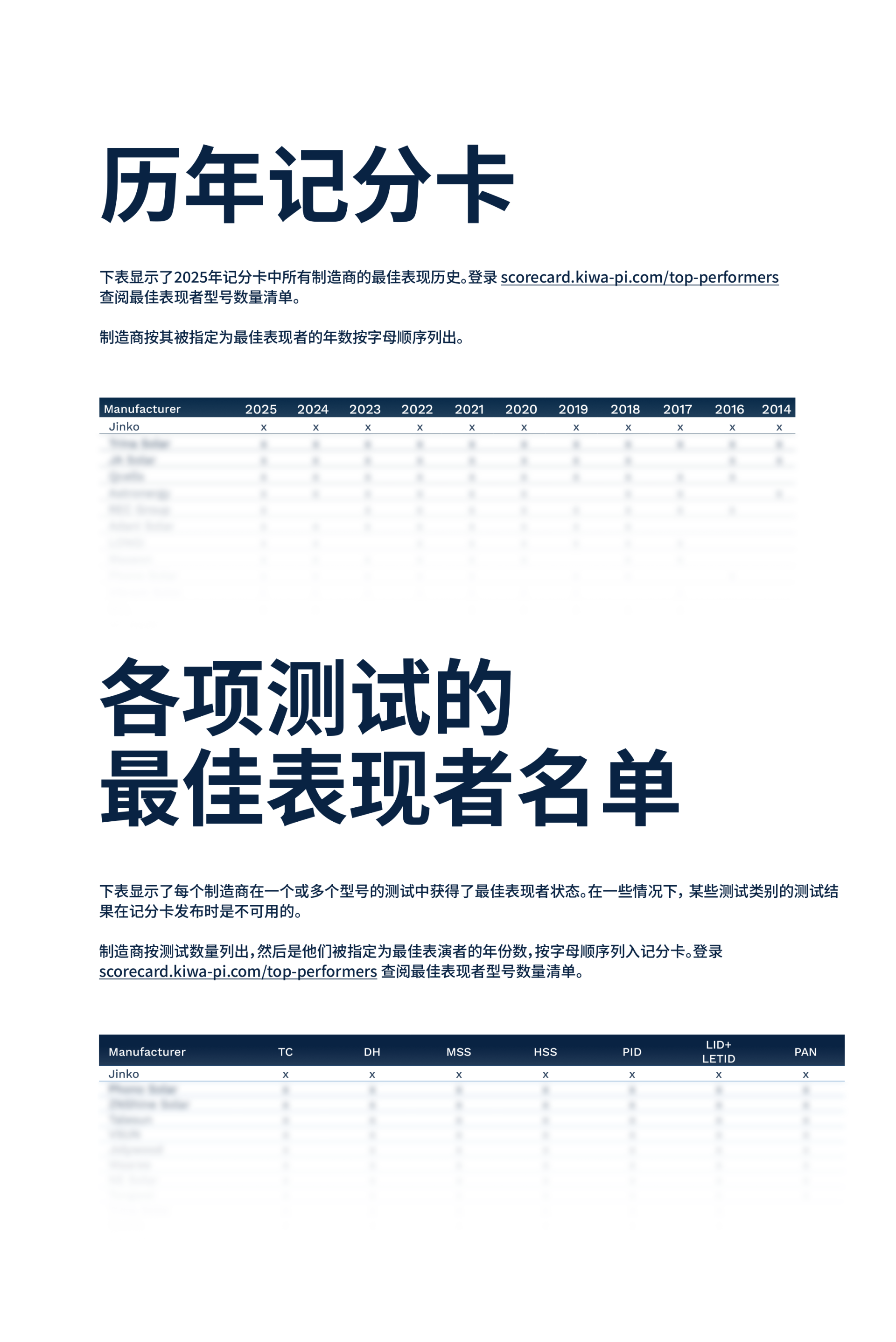 近日,晶科能源在Kiwa PVEL(以下简称“PVEL”)发布的2025年光伏组件可靠性记分卡报告中,在全部7个大项斩获“表现最佳”荣誉。