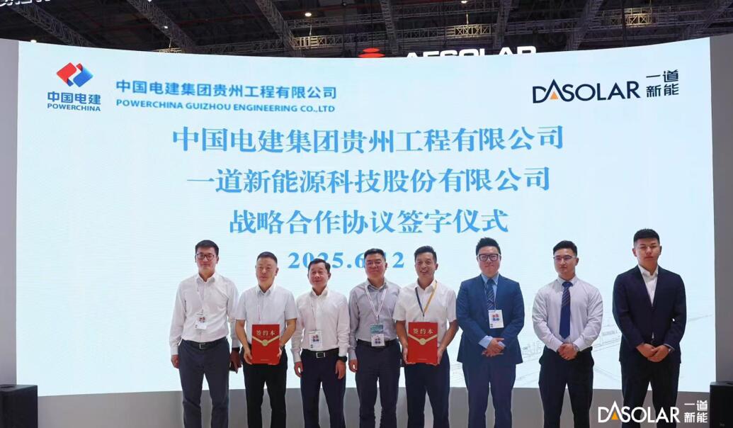 近日,在SNEC第十八届国际太阳能光伏与智慧能源(上海)大会暨展览会期间,中国电建集团贵州工程有限公司(以下简称“贵州电建”)与一道新能源科技股份有限公司(以下简称“一道新能”)正式签订战略合作协议,贵州电建副总经理余豪、总会计师高昱、副总经理闫建国、国际工程公司总经理穆晓庆,一道新能国内销售副总裁刘付炯、亚太区销售总经理郑毅、中国区营销总监陈英杰、中国区营销经理杨铭等领导出席此次签约仪式。此次签约标志着双方将在新能源领域再度携手展开全方位、深层次的合作,共同推动行业发展迈向新高度。