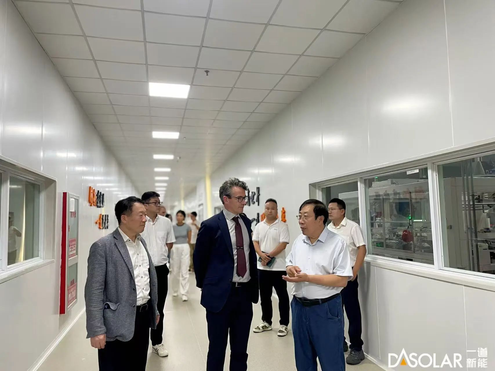 在宋登元博士等的陪同下,Ned博士一行首先参观了中央研究院实验室与研发线,深入了解SFOS项目未来产业化落地的支撑情况。参观过程中,他们细致考察了研究院的各类研究设施与测表征试设备,并对一道新能在SFOS底电池—TOPCon5.0取得的成果给予高度评价。他表示TOPCon5.0电池746mV开压和27%的效率,不仅展现了一道新能在光伏技术研发上的卓越实力,更为SFOS电池的研发提供了优质的底电池技术支撑,有望大幅推进SFOS电池的产业工程化应用进程及降低成本。随后双方围绕SFOS核心技术议题,展开了深入且广泛的技术交流讨论。