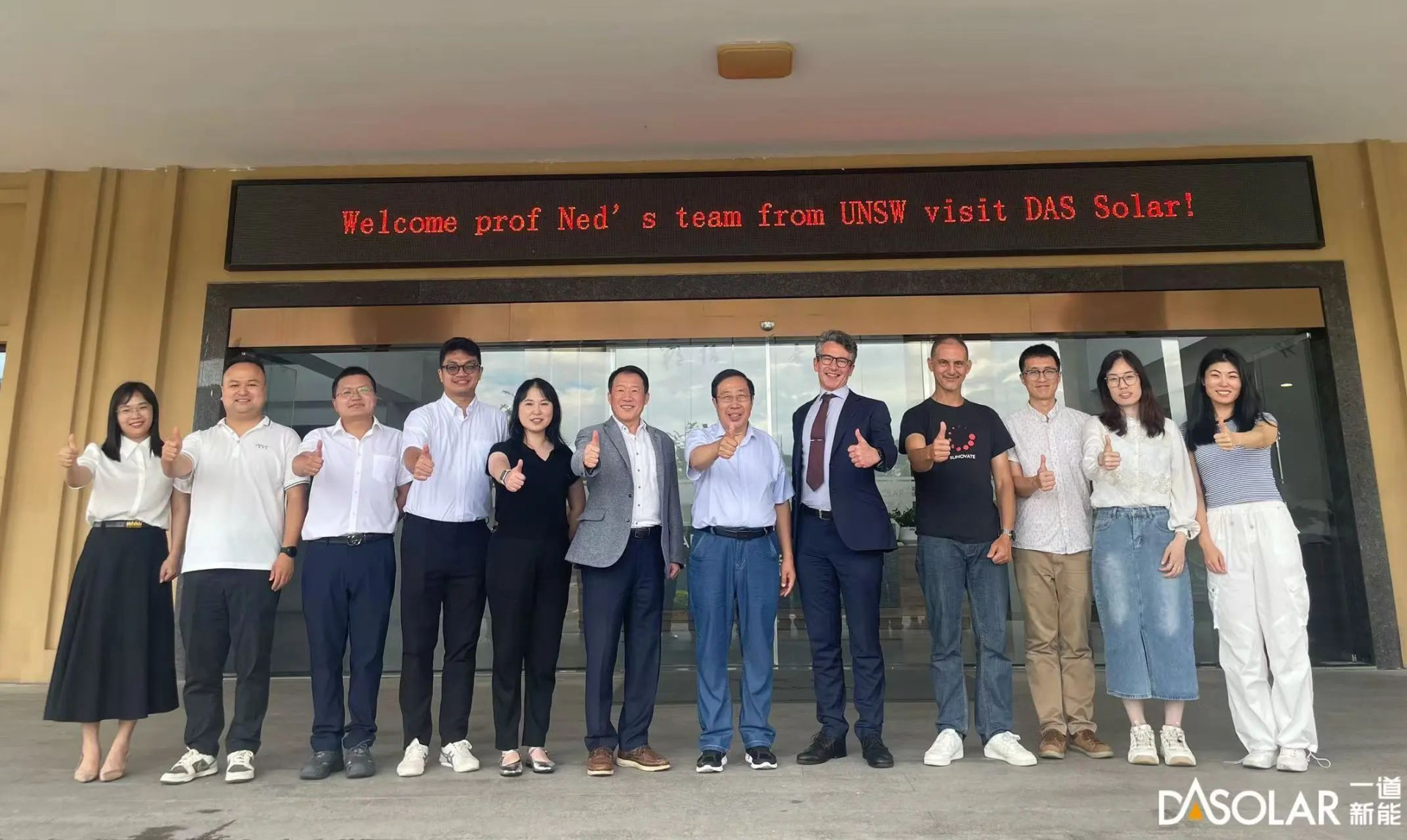 近日,澳大利亚新南威尔士大学马丁格林教授光伏实验室的多光子电池(SFOS)研发团队的Ned教授一行7人到访一道新能中央研究院。此次交流源于双方于2023年5月签署的联合研发协议,旨在通过多光子电池(SFOS)技术,达到40%效率突破。一道新能CTO、中央研究院院长宋登元博士,中央研究院副院长、研发总经理章康平先生等与Ned教授团队等围绕SFOS高效电池技术研发进展与产业化推进进行了深入的交流。