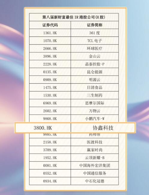 6月18日,新财富在江苏江阴发布第八届最佳IR港股公司榜单,协鑫科技凭借出色的投资者关系管理及资本市场表现荣誉上榜。