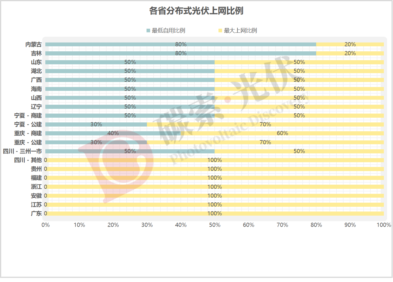 高比例强制自用:内蒙古要求一般工商业光伏自用比例不低于90%,吉林则规定上网电量不得超过20%,即自用比例需达80%以上,为17省中要求最严格的地区。宁夏则分场景管控,依托公共机构建设的项目自用比例不低于30%,依托工商业厂房建设的项目不低于50%。