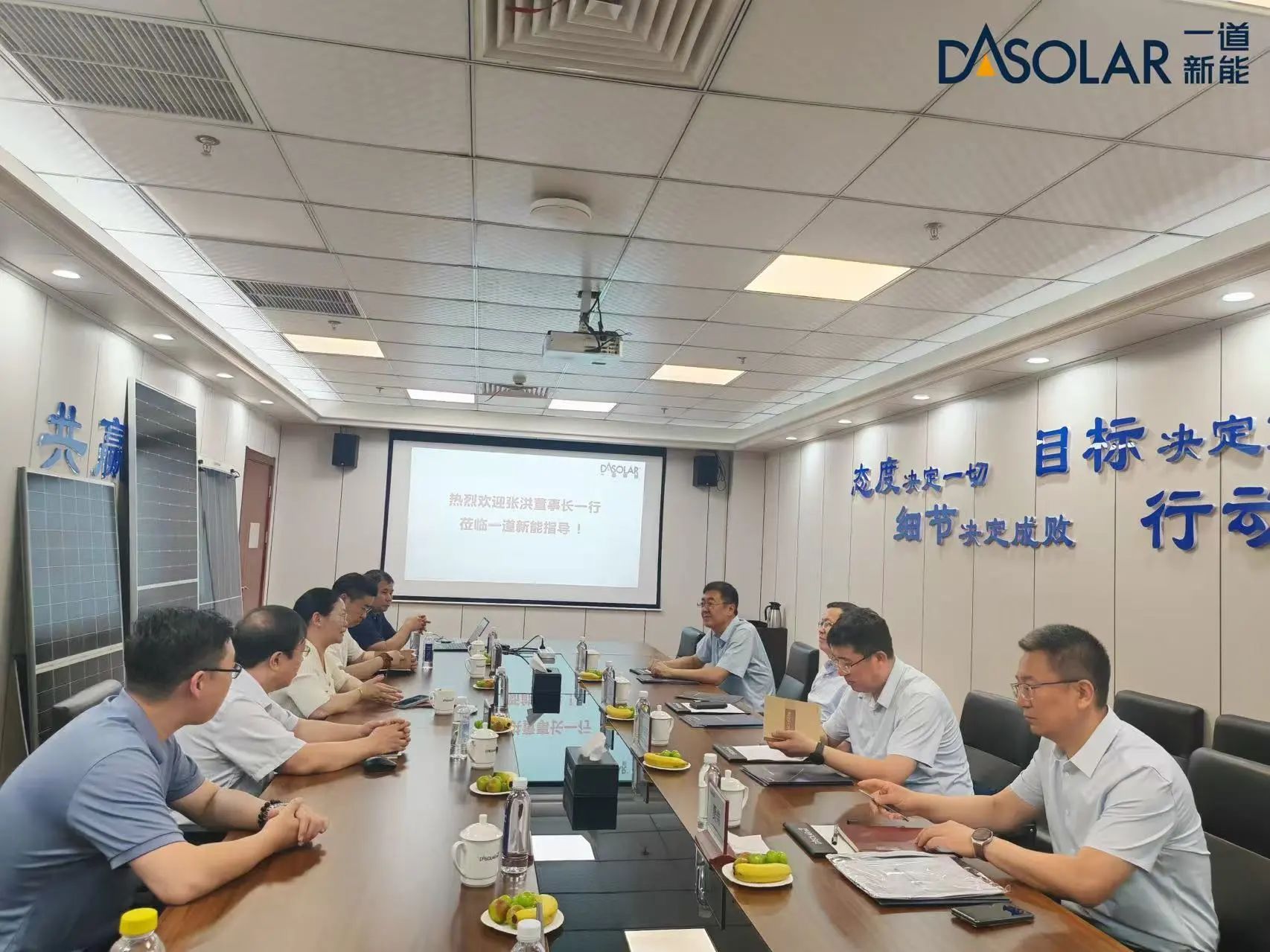 近日,大唐内蒙古能源开发有限公司(以下简称“大唐内蒙公司”)党委书记、董事长张洪一行赴一道新能拜访考察。一道新能CTO宋登元博士、集团高级副总裁黄卫红参与接待,双方就光伏先进技术、柔性支架、沙戈荒应用等合作议题展开了深入交流和探讨。大唐内蒙公司投资发展部主任徐佳宇、工程建设部主任米晖、供应链管理部副主任贾伟,一道新能大客户营销总监孟金辉、内蒙区营销总监唐诗亮等相关人员陪同。