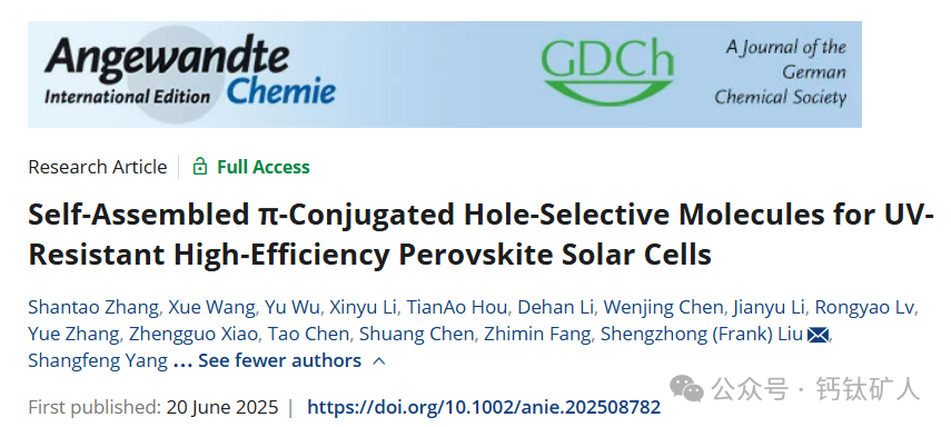 该研究专注于通过分子设计来提高钙钛矿太阳能电池的性能和稳定性。科研团队通过自组装技术合成了一系列π共轭分子,并将其应用于钙钛矿太阳能电池中,作为空穴选择性层。这些分子不仅提高了电荷传输效率,还增强了电池对紫外线的防护能力,从而提高了电池的整体性能和稳定性。