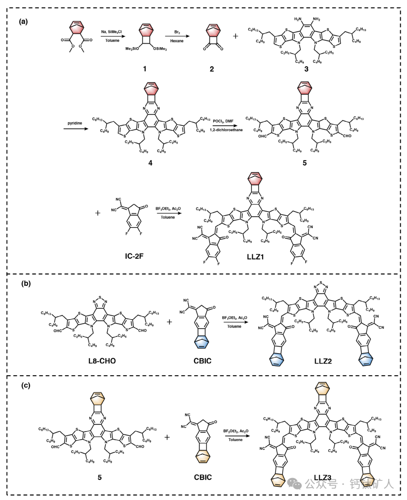 Scheme1. 基于二烯的受体分子LLZ1、LLZ2和LLZ3的合成途径。