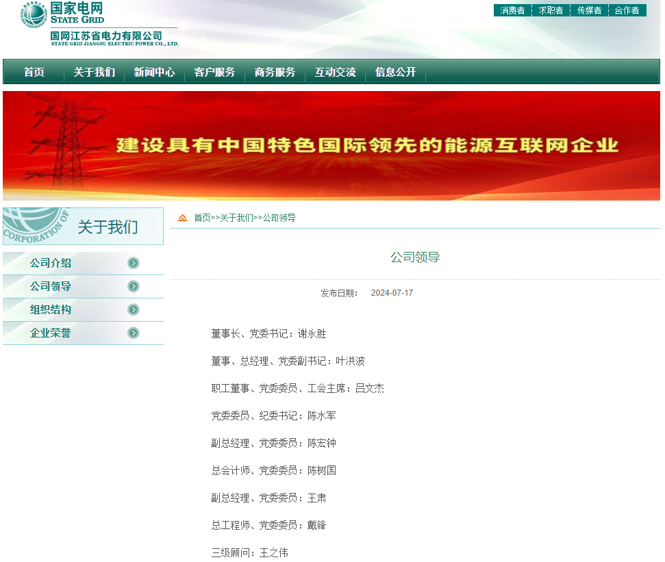 据国网江苏省电力网站消息,国网江苏省电力有限公司原副总经理、党委委员王之伟转为三级顾问