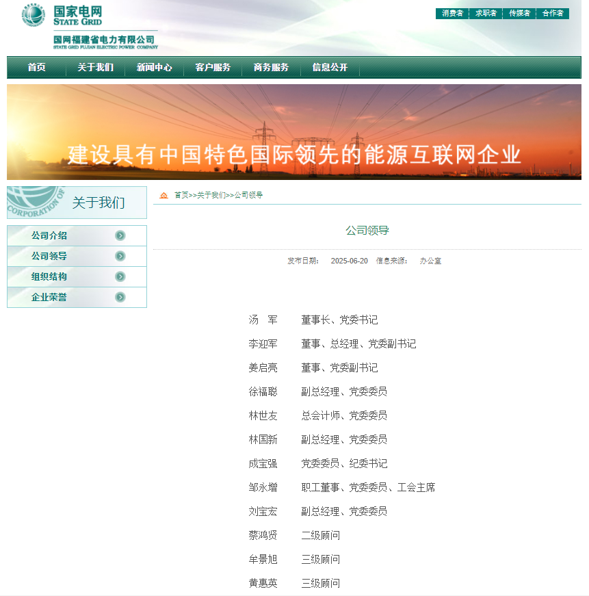 据国网福建省电力网站消息,国网福建省电力有限公司原副总经理、党委委员黄惠英转为三级顾问