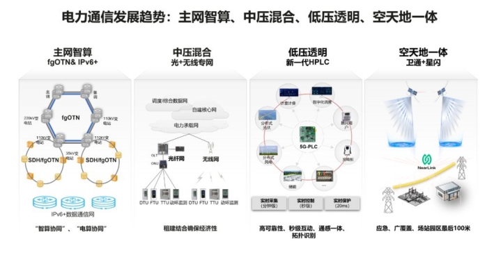 新型电力系统下,通信目标网呈现四大特征:主网智算、中压混合、低压透明、空天地一体。主网智算需要考虑的是包括以东数西算为代表的光跑电不跑,以边缘计算为代表的电跑光不跑,以及结合时空特性,来助力解决新能源消纳和削峰填谷;近期台风应急带给我们的启发是,10kV通信网是电网通信目前最薄弱的环节,是典型的“盲区”。这需要体系性规划以光纤+无线专网的通信目标网,也要辅之以空天地一体的应急和广覆盖能力;随着海量的分布式光伏接入、充电桩接入、分布式储能接入、用户互动及潜在的负荷侧交易,这需要体系性思考支撑400V低压透明的通信需求。