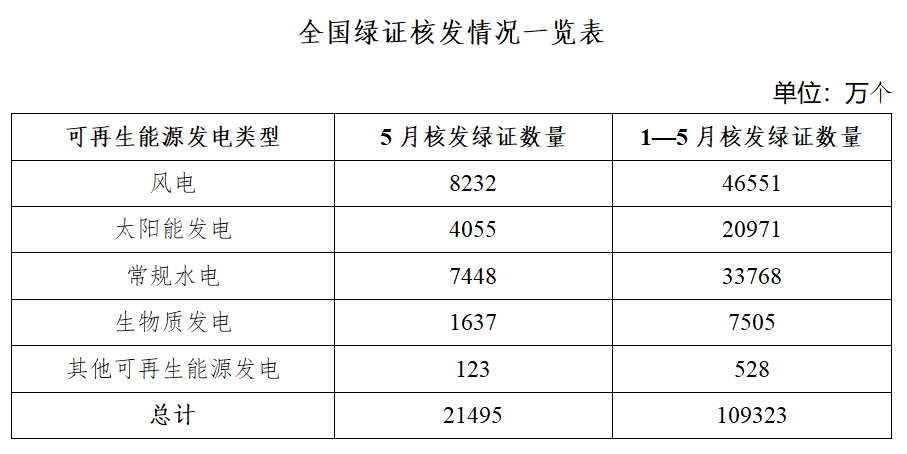 国家能源局发布2025年5月全国可再生能源绿色电力证书核发及交易数据