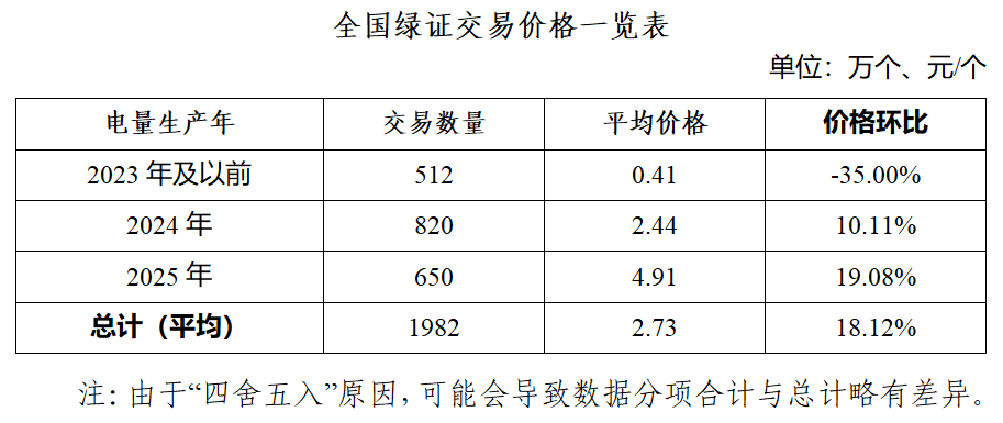 2025年5月,全国绿证单独交易1982万个,交易平均价格为2.73元/个,环比增长18.12%。
