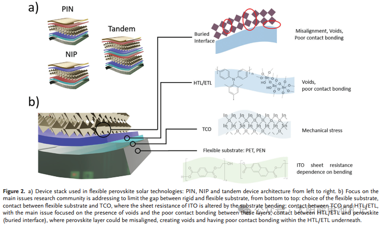 实现高性能柔性太阳能电池需要整个器件结构的协同优化。文章详细分析了各功能层的材料选择和设计原则:
