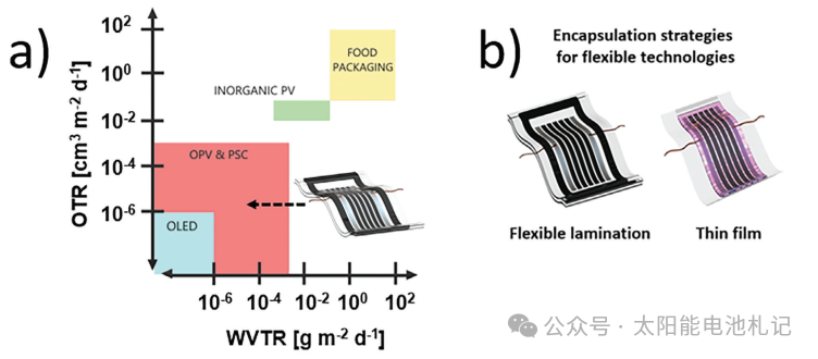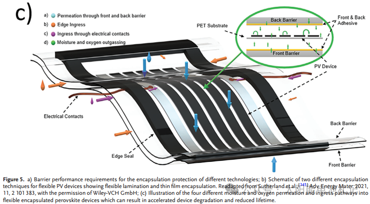 柔性钙钛矿器件对水分和氧气更为敏感,因此封装技术尤为关键。文章总结了两种主要封装策略: