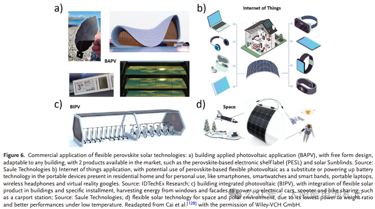 柔性钙钛矿太阳能技术最显著的优势是其出色的功率重量比,这使其在建筑一体化光伏(BIPV)、建筑应用光伏(BAPV)和物联网等领域具有独特优势。与传统的硅基或刚性钙钛矿太阳能电池相比,柔性器件可以: