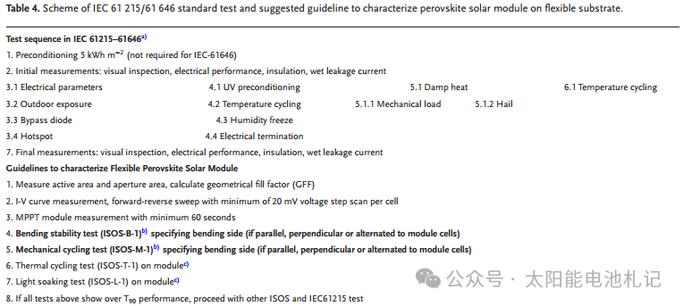 稳定性是柔性钙钛矿技术商业化的关键瓶颈。文章提出了针对柔性器件的稳定性测试新标准: