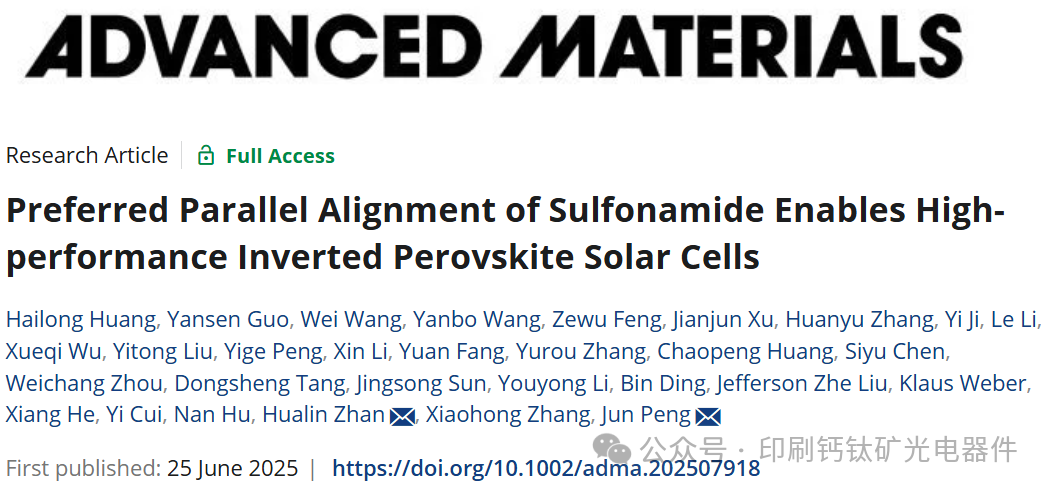 2、界面工程拓展:将平行排列的双位点钝化策略拓展到钙钛矿与电极的界面修饰中,优化电荷传输与界面稳定性,推动倒置器件结构的商业化应用。