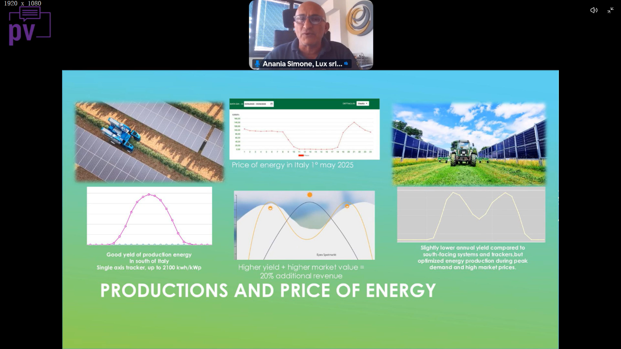 2025年6月25日,由华晟新能源与 pv magazine 联合举办的线上专题研讨会“加速垂直光伏与农光互补迈向主流”(Mainstreaming Vertical PV and Agrivoltaics)成功举行。华晟新能源欧洲业务开发总监Christian Comes、意大利Lux总裁Simone Anania、德国Next2Sun技术工程师Andres Yemail与pv magazine总编 Mark Hutchins四位行业资深专家与实践者,共同探讨华晟新能源以垂直光伏助力挖掘意大利及欧洲广阔的农光市场潜力。