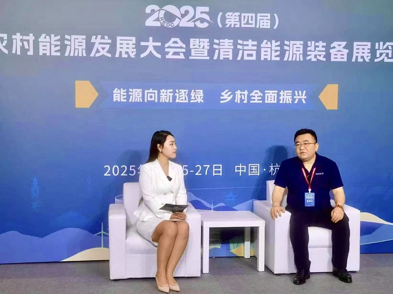 在展会期间,智慧能源中心总经理王可接受了《央视频》、《能源界》的现场采访,他表示:“华晟异质结组件具备“更高效率、更低衰减、更长寿命”三大核心优势,可全面满足农村用能在“强可靠性、低运维、高性价比”的关键需求。”同时,其垂直安装、柔性封装、高双面率等创新特性,也极大拓展了光伏在农村建筑、道路等多样化环境中的适应边界。
